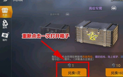 兑换成功之后重新点击兑换1次或者兑换10次可以打开相应的军需勋章获得道具