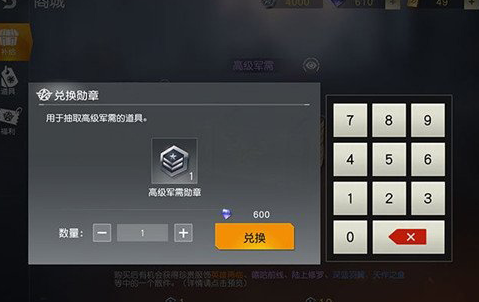 荒野行动高级军需勋章可以通过钻石兑换下,1个高级军需勋章=600钻石