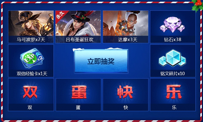 集齐“双”、“蛋”,“快”、“乐”即可兑换该奖励,单账号每日仅限一次。