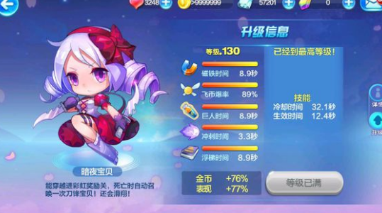 天天酷跑暗夜宝贝觉醒满级属性一览