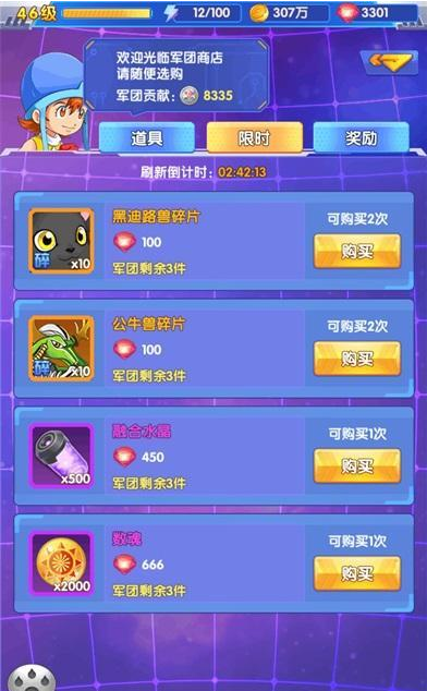 军团刷将:新手前7天可以自己建立一个军团,因为每天早9点,12点,下午6点,9点,都会有4次刷新军团商店的机会,运气好出现整个术师的箱子,果断拿下,这是必备的花销,也是前期战力的保证,建议刷够7天,起码全部术师够突6、突7再收手,解散了军团去大部队。