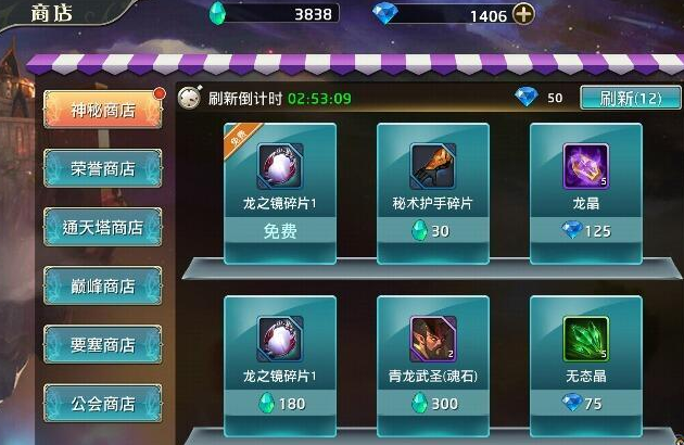 3.神秘商店,在这里不定时的更新物品,包或荣誉商店巅峰商店,工会商店等等的地方,都可以获取到英雄魂石,多留意他的刷新,就可以在这里买到自己需要的英雄魂石了