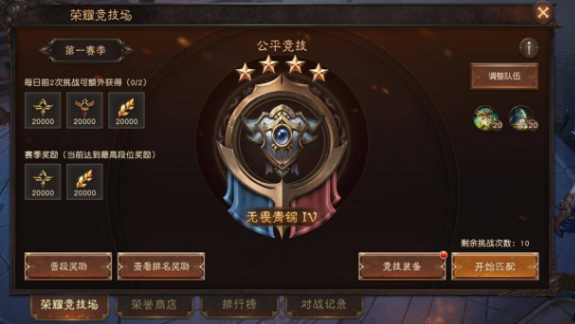5. 每日前两场比赛可以获得大量荣誉值与勇气值奖励。