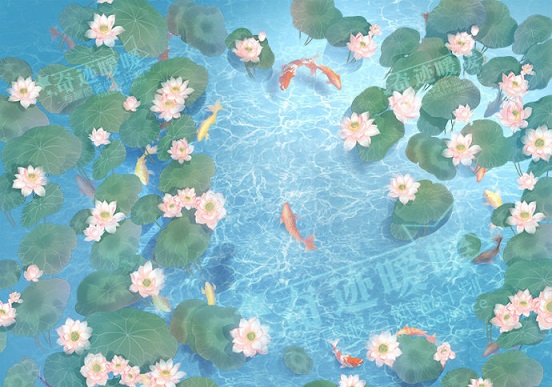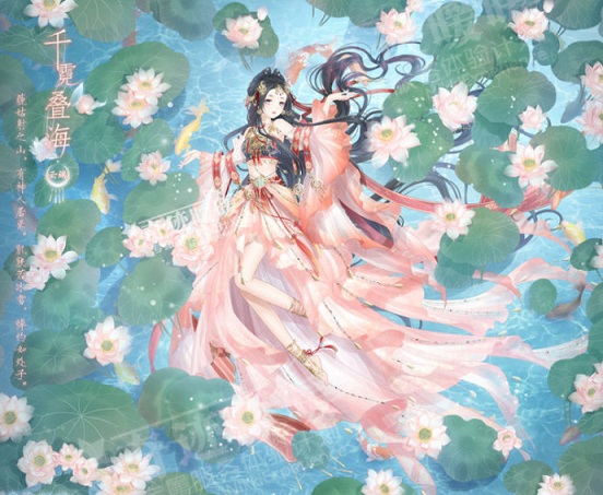 打成【千霓叠海】套装成就即可领取超精美换装背景“朱鲤莲池”。