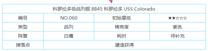 碧蓝航线科罗拉多是一艘战列舰,这是一艘紫色的白鹰舰娘,不少小伙伴们都很想获得这个舰娘,因此想要获得这个舰娘的小伙伴们,就让小编给大家详细的讲讲吧,一起来看看吧。