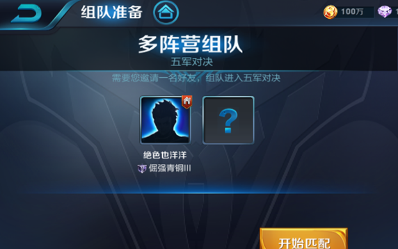 3) 五军对决每个队伍只有2个玩家,所以这个玩法对队友配合要求较高,首次测试我们将只允许双排匹配,不能单人进入游戏。