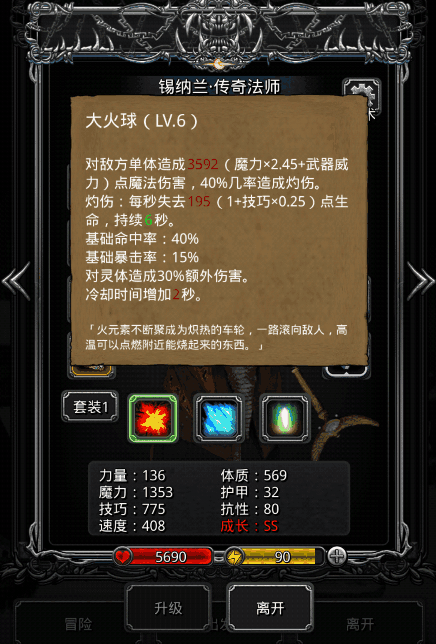 传奇,恶魔仗,献祭者长袍,魔灵戒,璀璨吊坠(没有就用毁灭者符文做符文之戒,战利品用加魔力和命中的)。