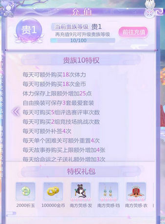根据下面VIP10的特权,其余等级的VIP特权咱们可以推算一下。