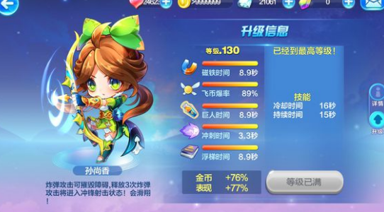 以上就是天天酷跑孙尚香满级属性一览,孙尚香技能介绍,请大家继续关注。