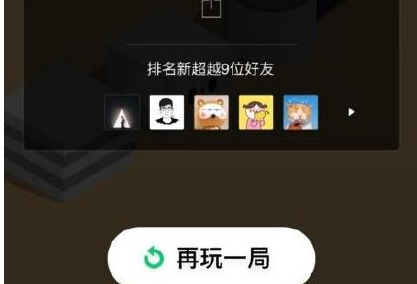 游戏结束后,你可以查看你在好友中的排名,还可以选择「分享」功能,将你的战绩分享到微信群,让其他群友一起挑战。