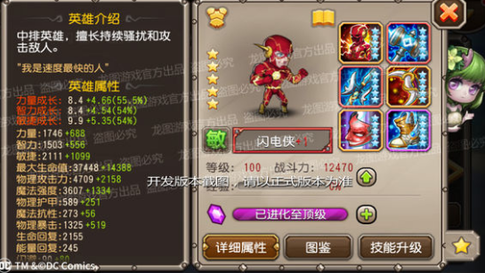 闪电侠作为中排切入类英雄,敏捷属性非常出众,出色的物理攻击力、暴击和穿透护甲的属性使他带来的伤害更加具有威胁,自身的生命值和闪避属性,配合他在战场上风一样的速度,生存能力得以保障。