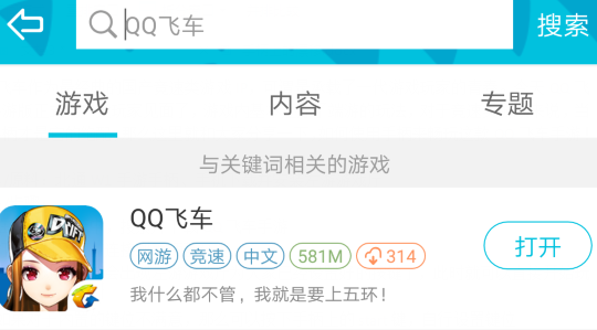 2、在左游游戏厅中,搜索并下载QQ飞车手游