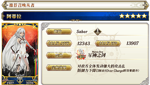 推荐召唤期间,推荐召唤从者出现概率提升!