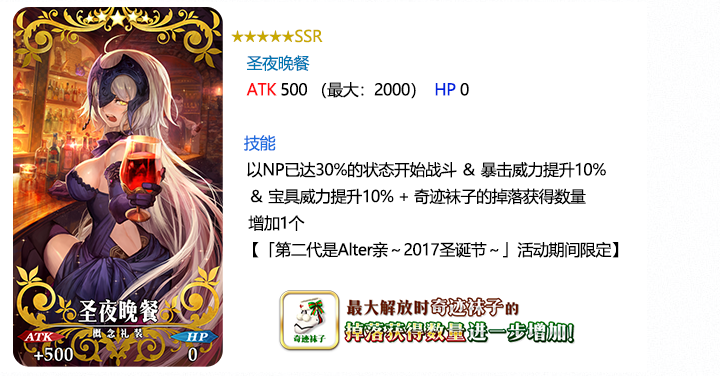 以上就是西西小编为大家带来的fgo圣夜晚餐值得兑换吗,圣夜晚餐技能属性一览。希望大家喜欢。