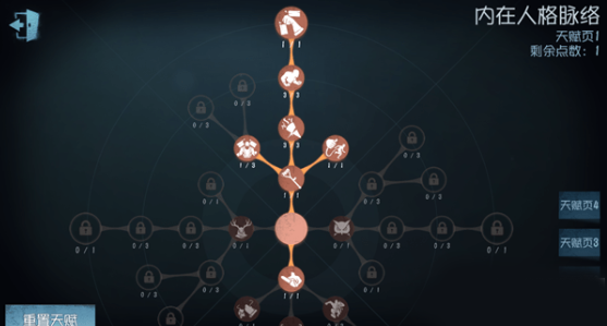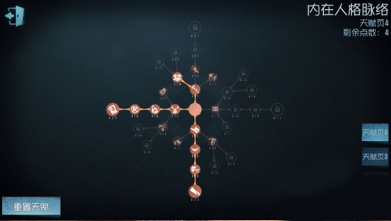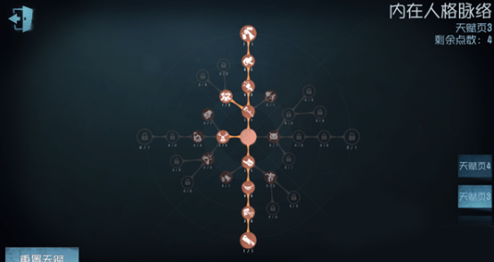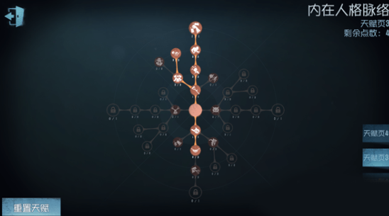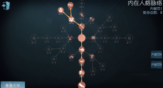 人格方面,我推荐大家点出失明,一拖三和一刀杀,四趴也可以考虑把一级一拖三换成鹿头。失明是监管者追能绕的人类必备技能。一拖三在砍伤人类后拖住其他人类修电机的节奏很有利,一刀杀相对而言应付快节奏局,是后期止损和翻盘的保障。(点数不够优先点出小擦刀和防砸,监管者追板子区和蛇皮怪必备)