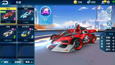 帝王这辆车集氮气绝对不会让你失望哦~因为这辆车车速很快,而氮气蓄力正是和车辆漂移时候压力来决定,所以车速越快的时候,漂移时候压力随之越大,所以氮气蓄力增长也就越快。简单来说氮气记得快不快也是看赛车的速度的。