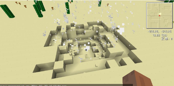我们在轨道前放置方块 当tnt矿车装上去的时候 就会产生爆炸 如图: