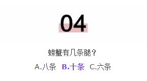 因此严格地说,螃蟹应该有八只可以行走的腿,还有两只不具备行走功能的螯足,也就是十条腿。