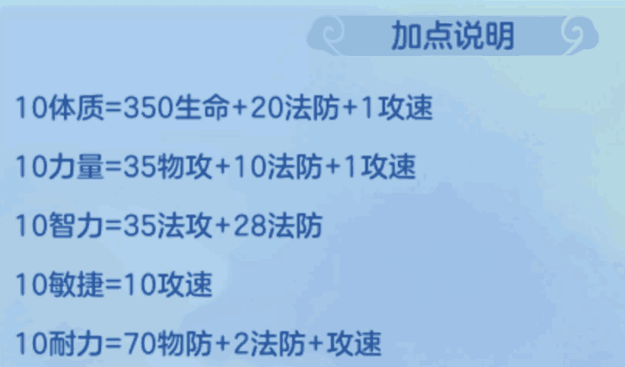 首先大家先熟悉下加点对应的属性,上图一目了然的显示了每个点数对应的属性。需要注意的是:想加速度的,主要还是靠加“敏捷”和打敏捷宝石,亦或装备上的敏捷属性。