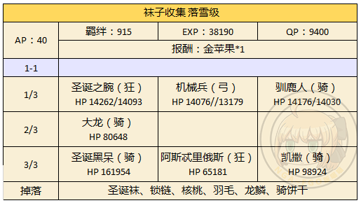 以上就是FGO圣诞二期鹅毛大雪级自由本的材料掉落一览了,大家在鹅毛大雪级解锁后就可以来这里刷袜子了,直到之后的鹅毛鹅毛大雪级出现,再进行对应的转移。
