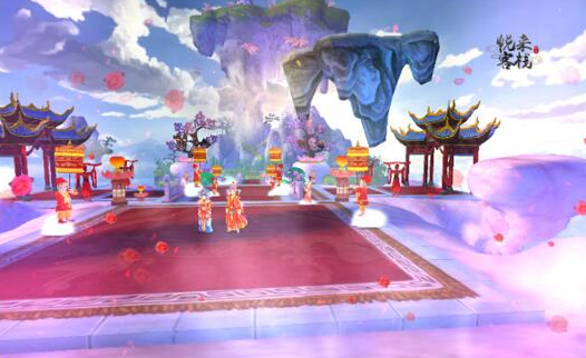 共舞结束后,大世界刷出“云宵台”,仙侣下落至云宵台上。同时,云宵台上刷出npc仪仗队和npc司仪。刷出司仪后,发送跑马灯:“XX和XX的仙侣大典,将在三分钟后与三清境云宵台举行,请广大仙友前来参与!”