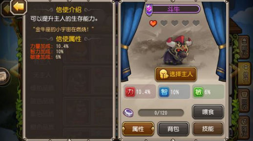 红牛,当主人剩余血量低于30%时,给主人进行一次回血并增加护甲。