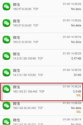 4、返回到Packet capture中,点击这个后面具有SSL字样的微信进程