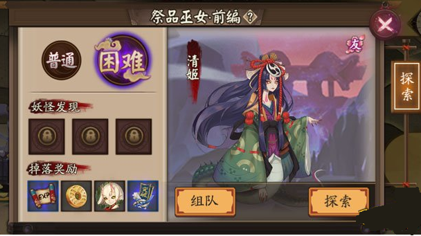 阴阳师探索第24章除了第三个清姬有2回合,其他都是一轮,非常适合刷狗粮~