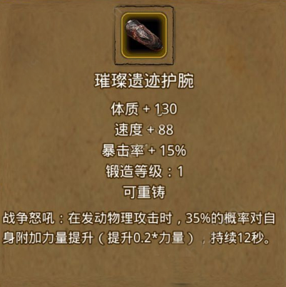 15、任务装备有能重铸的,前期没必要重铸,浪费铁,收益还很低,等你铸造等级上了20级你会发现一次重铸相当于一件全新装备。