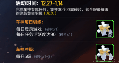 车神的每日训练,每天可以获得两个黄金羽翼,还有车神冲级也能获得相应碎片,再就是通过初中高级驾照,也是可以获得碎片的。