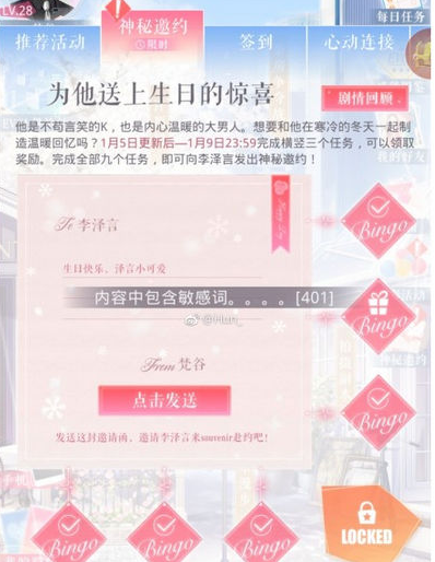 恋与制作人中的李泽言即将要过生日了,小伙伴们可以给自己最喜欢的李泽言送上生日祝福,但是很多小伙伴们发现自己在写生日祝福的时候出现敏感词,想知道怎么解决,就让小编给大家详细的讲讲吧。