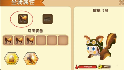 第一步,先召唤出家园中中用碎片兑换的坐骑(电脑版按快捷键“H”),比如先召唤一只小飞鼠。