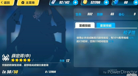 「薛定谔·中」的效果是缩减必杀技和闪避技能的CD时间,满级有50%的概率可减少51%的冷却时间,是目前减CD值最高的单件圣痕。但是相对于上位的效果来说,中位圣痕有50%概率使闪避和必杀技的冷却时间增加20%,有一定的负收益。