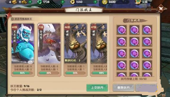 除此之外我们在挑战妖王结束后,还会根据各自的贡献值来给予大量的金钱奖励。不过要注意的是普通妖王和妖丹妖王每日都是只可以获得一次参与奖励的,所以每日只能从这两种妖王当中每个都挑战一次。