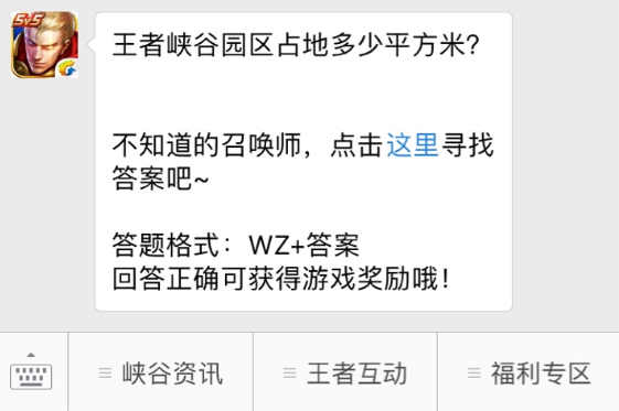 王者荣耀今天每日一题的题目是王者峡谷园区占地多少平方米,玩家通过最近的文章可以知道答案哦,回答正确即可拿到奖励,那答案是什么呢,西西小编来为大家介绍。