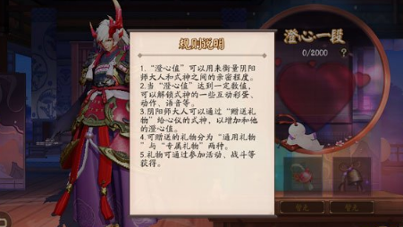 作用:达到一定数值可以解锁式神的互动彩蛋、动作、语音。可以通过赠送礼物提高数值。