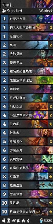 2.巫妖王是最后加的,增加厚度,8费本来就曲线空缺,还提升巴内斯,实战感觉挺好的,如果给到全体魔免+2+2可以给对面一个surprise,给到偷随从可以增加一手对宇宙牧的赢面(偷到对面沉底的维纶赢过一次)。
