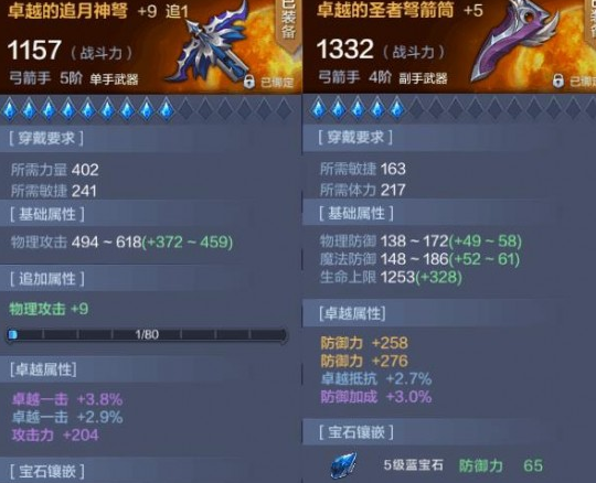单手武器和双手武器到底哪个好呢,主要还是看战力和属性决定。如果双手武器的战力比单手武器+副手的战力高,那肯定选双手武器,反之则选单手武器。话不多说,上图对比下。