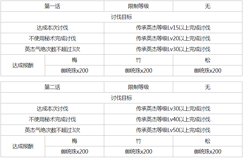 各话讨伐目标