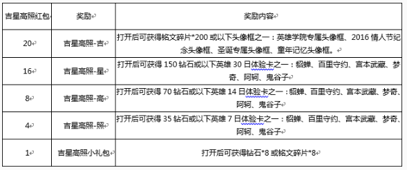 王者荣耀最新活动,小伙伴们只要进行收集活动就能兑换好礼,因此不少小伙伴们最关心的就是能兑换什么,最为关键的是吉星高照红包怎么才能获得,想知道的,就让小编给大家详细的讲讲吧。