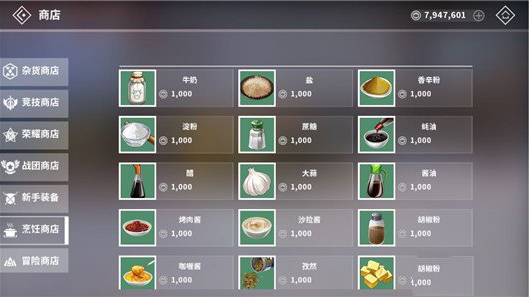 其中淀粉和盐可以直接在烹饪商店中通过银币进行购买,完全没有获取难度。其他素材则需要想想办法了。