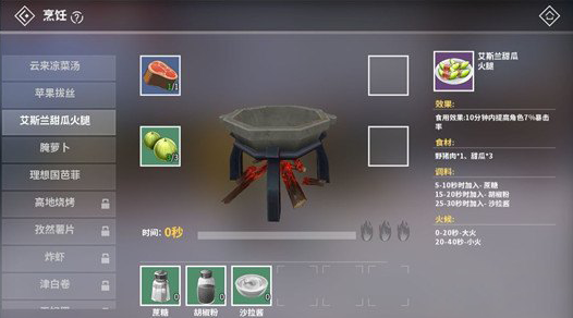 在时间5~10秒之间加入蔗糖(放入需要拖动物品到锅里,不是单纯点击哦~),15~20秒时加入胡椒粉,并且0~20秒之间都保持大火烹饪;