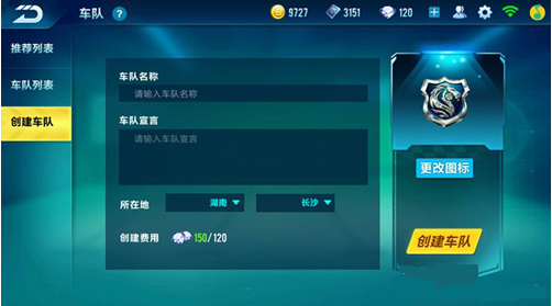 2、点击创建车队后,在出现的界面输入车队名称和车队宣言,以及所在地。