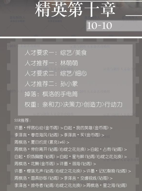 恋与制作人精英10-10怎么过? 精英10-10三星攻略: