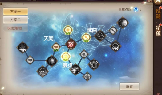 星蕴加点有三个分支,分别为天同、廉贞和武曲