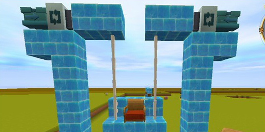 2、在两根柱子上分别放上一个面对面的转轴方块;