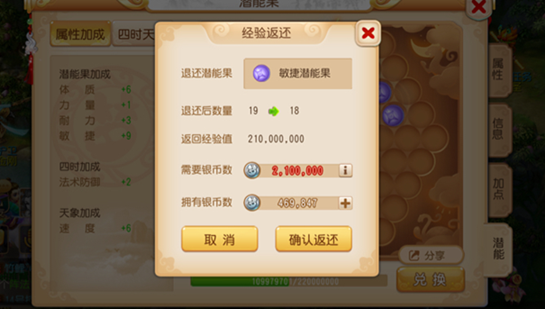 以上就是梦幻西游手游潜能果经验返还要多少钱,潜能果经验返金钱消耗分析,请大家继续关注。