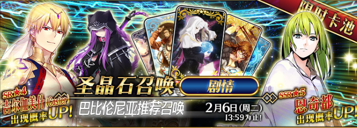 活动时间:2018年1月14日 维护后 ~ 2月6日 13:59。为纪念七章开幕,剧情卡池将开放巴比伦尼亚推荐召唤!