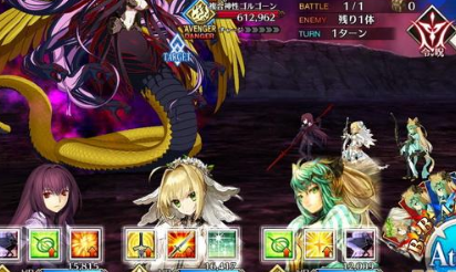 提亚马特普攻全体,但是HIT数很多,所以我方全体NP获得飞快