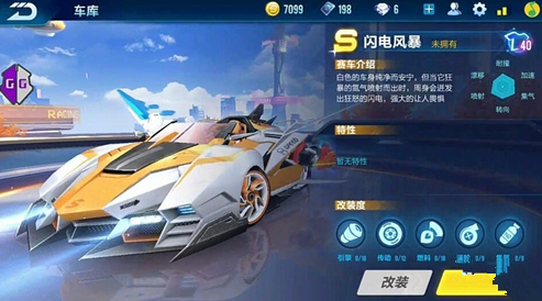 作为游戏中的最顶级赛车,闪电风暴的赛车性能是毋庸置疑的,可以说拥有他的玩家在游戏开始的时候就已经取得了先天上领先优势!